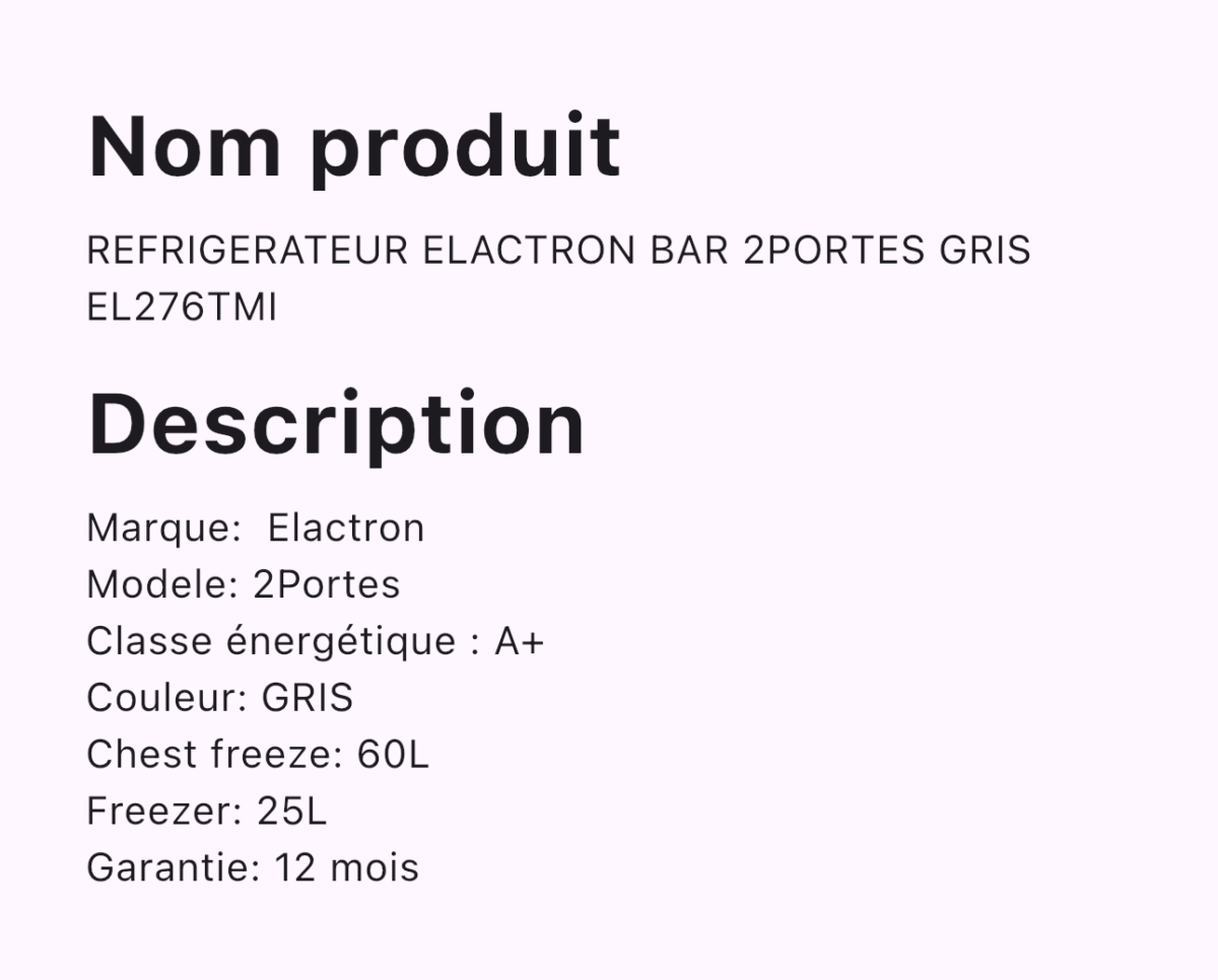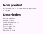 Soyez le premier à laisser votre avis sur “REFRIGERATEUR ELACTRON BAR 2PORTES GRIS