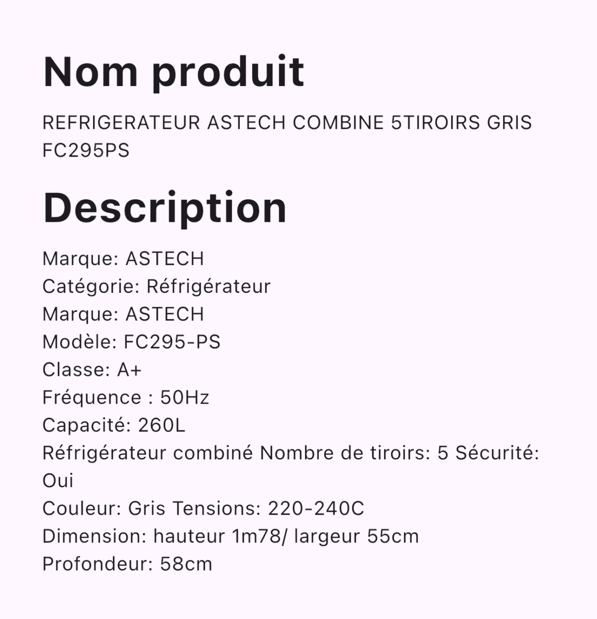 Soyez le premier à laisser votre avis sur “REFRIGERATEUR ASTECH COMBINE 5TIROIRS GRIS
