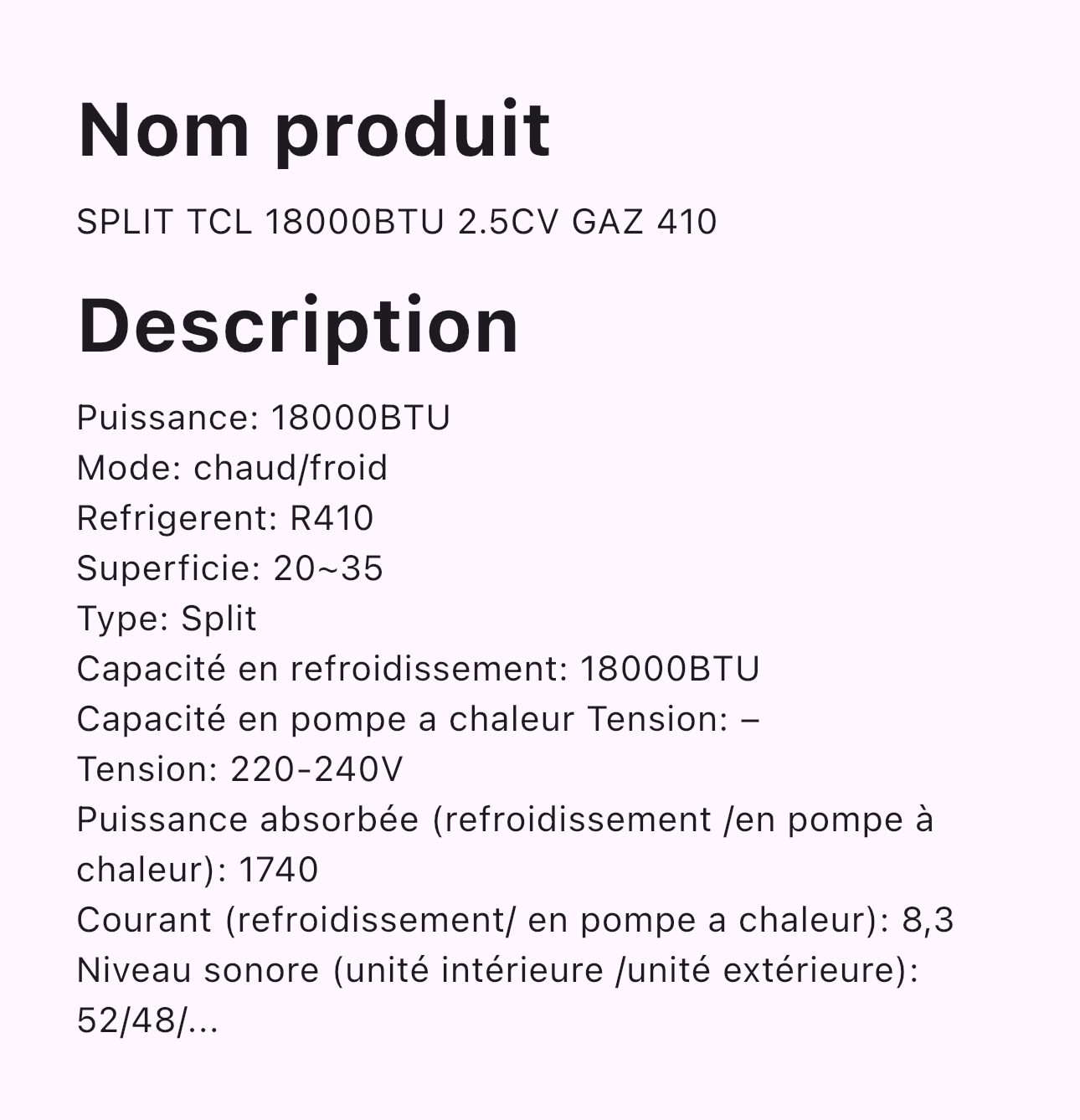 Soyez le premier à laisser votre avis sur “SPLIT TCL 18000BTU 2.5CV GAZ 410” Annuler la réponse